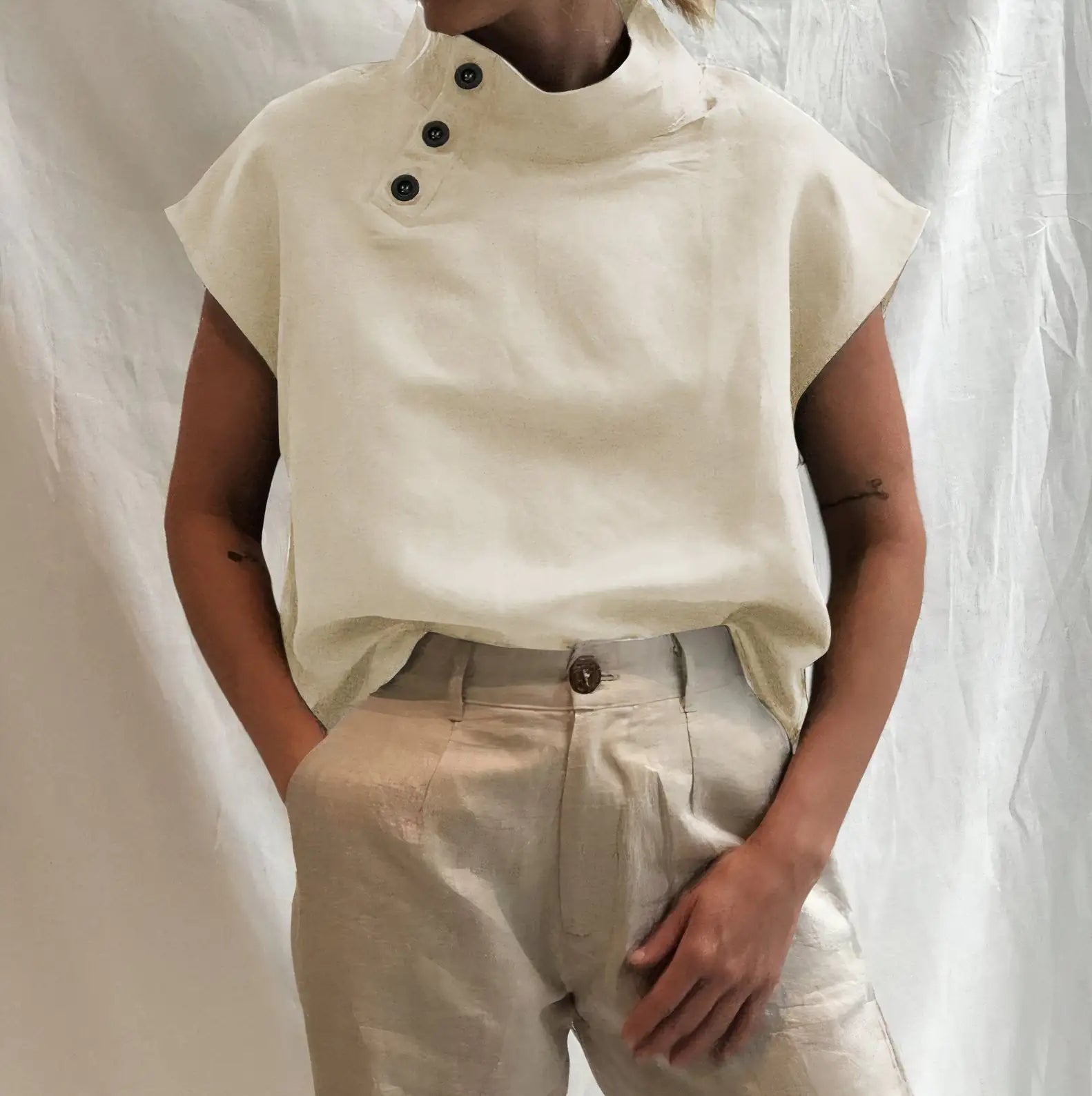 Perfect for casual outings, weekend wear, or relaxed office days. Pair with jeans, leggings, or skirts for endless styling possibilities. The unique button detail elevates this essential piece beyond basic.